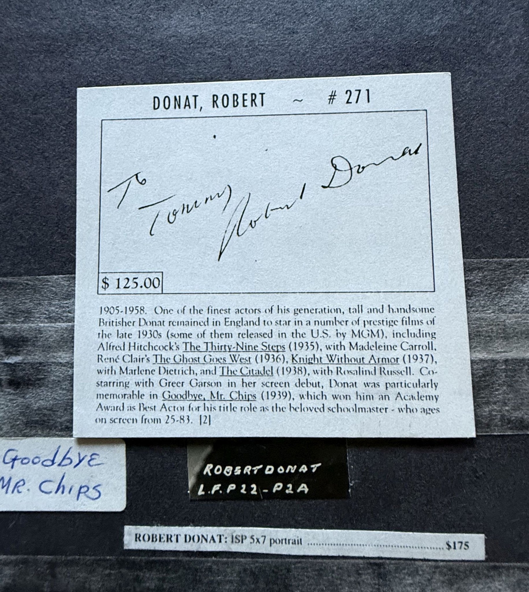 Robert Donat (d. 1958) Signed Autographed Vintage "Goodbye Mr. Chips" Matted Signature - Lifetime COA