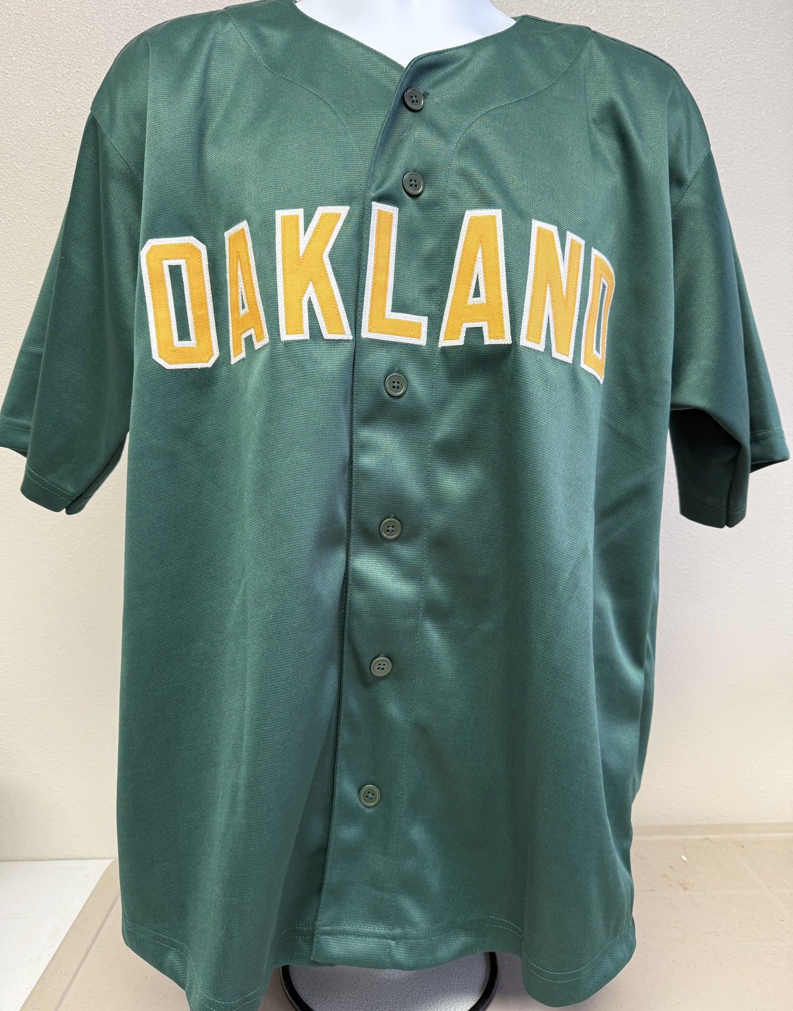 Jose Canseco Signed Autographed Oakland Green Lifetime Stats Baseball Jersey - Beckett BAS